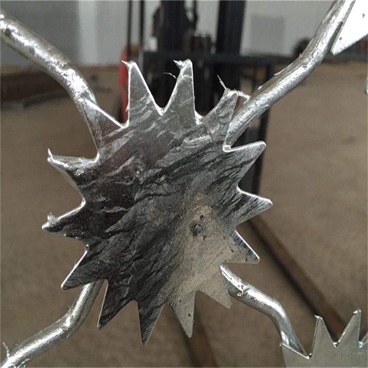 監(jiān)獄焊接刀片刺網(wǎng)網(wǎng)片菱形狀刺網(wǎng),刀刺網(wǎng)生產(chǎn)工藝:刀片刺網(wǎng)由銳利尖角鍍鋅鋼板或不銹鋼薄板做刀片,鋼絲做芯線組合而成的新型防護(hù)產(chǎn)品。鋼網(wǎng)墻表面處理;先鍍鋅,在PVC浸塑,顏色自選,亮麗大…
