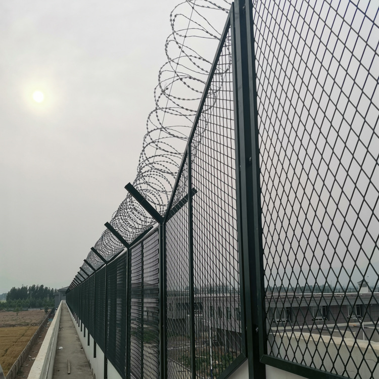 監獄圍欄網的鐵絲網直徑為2.5mm ,鋼板厚度為0.5mm ,監獄圍欄網的表面技術:防腐處理,耐老化,耐酸堿,不褪色;刺鐵絲網的布置密度不小于10轉/米,相鄰圓之間的距離不大于100mm。監獄隔離網的材料是304不銹鋼。