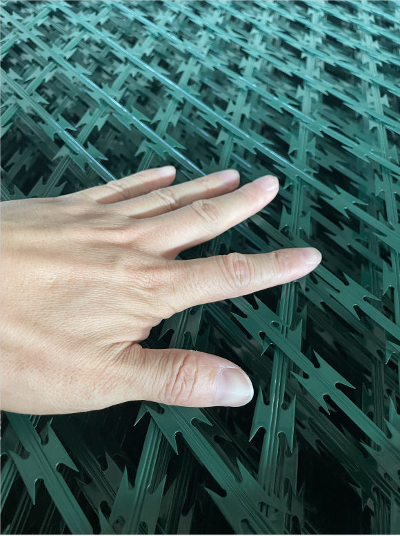 圍墻巡邏道隔離網(wǎng)建設(shè)于內(nèi)外墻地面及高墻之上,網(wǎng)墻內(nèi)側(cè)或頂部加裝蛇腹形刀刺網(wǎng),形成-道高不可攀、難以逾越的隔離障礙。配合高壓打擊電網(wǎng)、各種監(jiān)控報(bào)警設(shè)備確保場(chǎng)所安全萬(wàn)無(wú)一失。