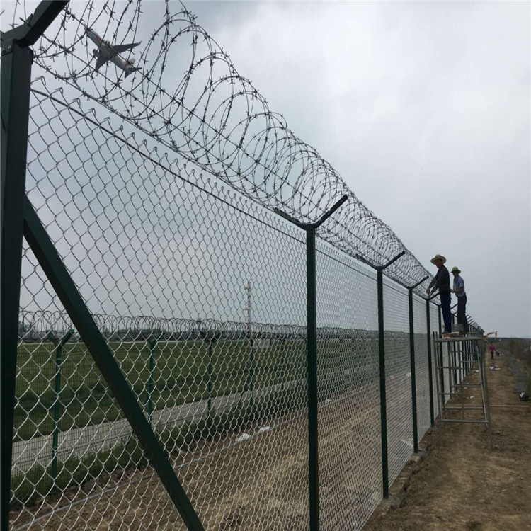 鋁包鋼機場隔離網(wǎng)是一種新型機場防護網(wǎng), 和以往的機場隔離網(wǎng)相比較使用年限更長。以往的機場隔離網(wǎng)都是采用6m鋼筋焊接網(wǎng)片結(jié)合邊框和叉立柱成為一道安全防護封閉墻。