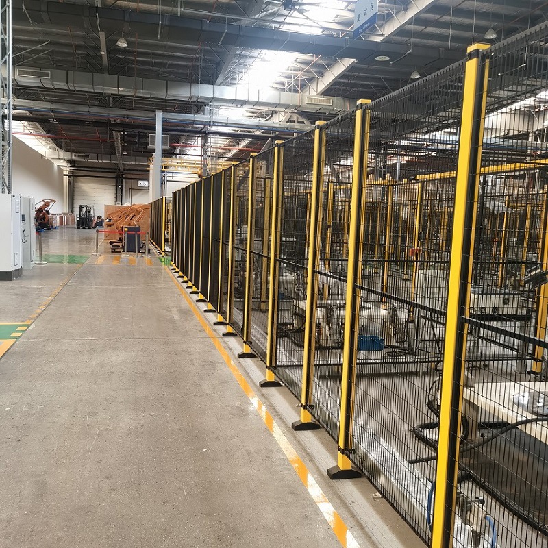 機器人安全圍欄,有區域隔離的效果,可以用圍欄劃分幾個區域,美觀整齊。出現故障時,還能起到隔離保護作用。多用警示黃色的型材及網,提醒安全作用。也可對配件進行顏色定制,如杯型地腳,連接件等也可制作成警示黃。還可以根據客戶需求,安裝報警裝置, 在危險時發出報警的聲音??傊畽C器人安全圍欄是工廠車間必不可少的。