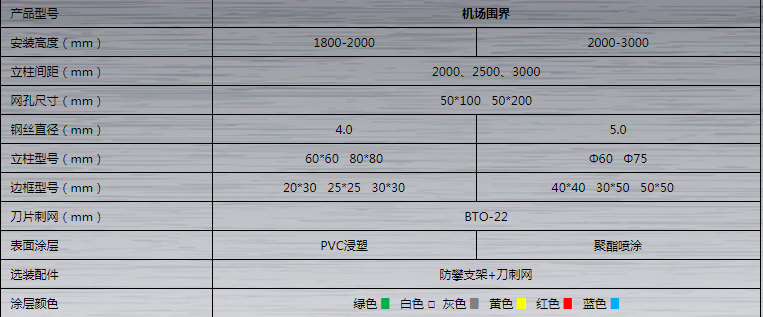 特點(diǎn):如果在機(jī)場護(hù)欄網(wǎng)頂部加裝刀片刺絲、刀片刺繩后又很好的增強(qiáng)了安全防護(hù)性能。采用電鍍、熱鍍、噴塑、浸塑等防腐形式,具有很好的抗老化、抗曬、耐候等特點(diǎn)。其產(chǎn)品造型美觀、花色多樣,既起到圍欄作用,又起到美化作用。由于具有安全性高、防攀爬能力好,網(wǎng)片連接方式采用特制SBS緊扣件,有效防止人為的破壞性拆卸,橫向四道折彎加強(qiáng)筋,使網(wǎng)面強(qiáng)度顯著增加。