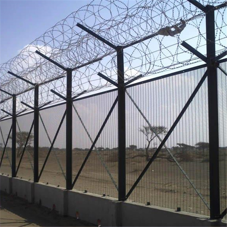 監獄鋼網墻是一種新型保護網,由刀片,刀尖,鋼絲交織而成。監獄鋼網墻有警戒的效果,原料強,強度高,張力高,防翻越,防爬等設計獨特的設計,使人不敢觸摸,所以它可以達到恐嚇的效果,更有良好的保護屏障影響。監獄鋼網墻還具有簡單的結構,經濟和有用。該產品崎嶇,價格低,適宜的大型選擇。