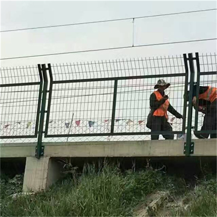 鐵路防護柵欄也叫鐵路護欄網、鐵路防護網、鐵路防護柵欄,是金屬網片防護柵欄的樣式之一,主要作用與鐵路倆側防止防止行人、車輛穿越,保障行車安全的作用,防護柵欄的結構是由金屬網片、鋼筋混凝土立柱組成。
