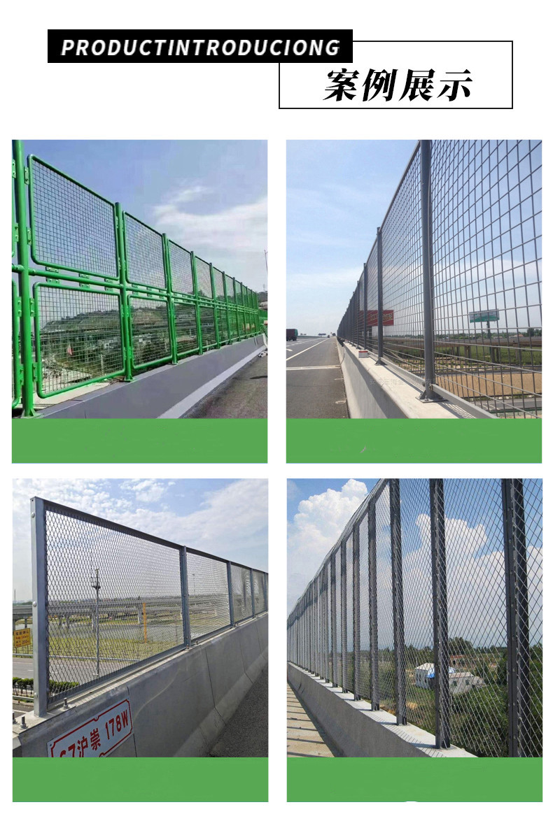 高速公路互通橋防拋防落網(wǎng)橋梁防落物網(wǎng)優(yōu)點: 1. 網(wǎng)身輕巧、造型新穎、美觀耐用; 2. 特別適合于橋梁防拋網(wǎng); 3. 高效浸塑十年防銹; 4. 拆裝方便,重復(fù)使用性好,可根據(jù)需要對圍網(wǎng)重新布局; 5. 環(huán)保產(chǎn)品,最終可回收利用。高速公路互通橋防拋防落網(wǎng)橋梁防落物網(wǎng)外型新穎、橫向通透、美觀輕巧、 獨創(chuàng)風(fēng)格、防眩效果特佳,避免夜間行車受對向車輛射出強(qiáng)光而影響視覺所造成的交通事故,保證了道路暢通和經(jīng)濟(jì)效益。加熱浸鋅表面處理,防銹功能超過15年。本產(chǎn)品所采用的桃型柱、雙圈、波浪、雙邊護(hù)欄網(wǎng)等系列的專業(yè)產(chǎn)品具有網(wǎng)身輕巧、造型新穎、美觀、